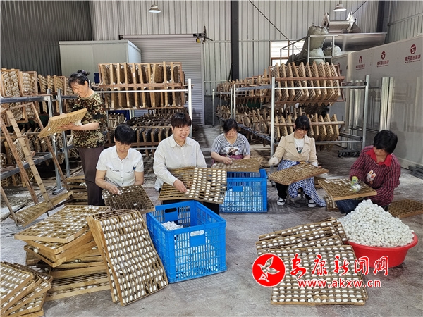 本網(wǎng)訊(通訊員 彭佳芝)眼下正是春繭豐收上市的季節(jié)。這幾天,白河縣冷水鎮(zhèn)興隆村隆康農(nóng)林專業(yè)合作社的標(biāo)準(zhǔn)化養(yǎng)蠶室里一派熱鬧繁忙景象,數(shù)百?gòu)埛礁翊卣R排列,如鴿子蛋般大小的雪白蠶繭均勻分布其中,工人們正在抓緊摘收鮮繭,忙得不亦樂(lè)乎。不一會(huì)兒,蠶室里就碼起了成堆的小“雪山”。