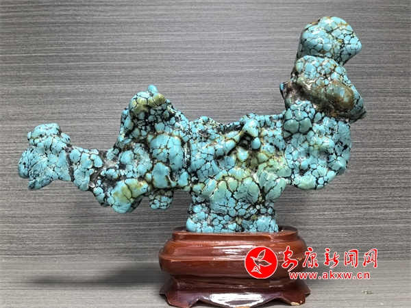 中國寶石琢玉藝術(shù)家徐安對白河綠松石進(jìn)行雕刻