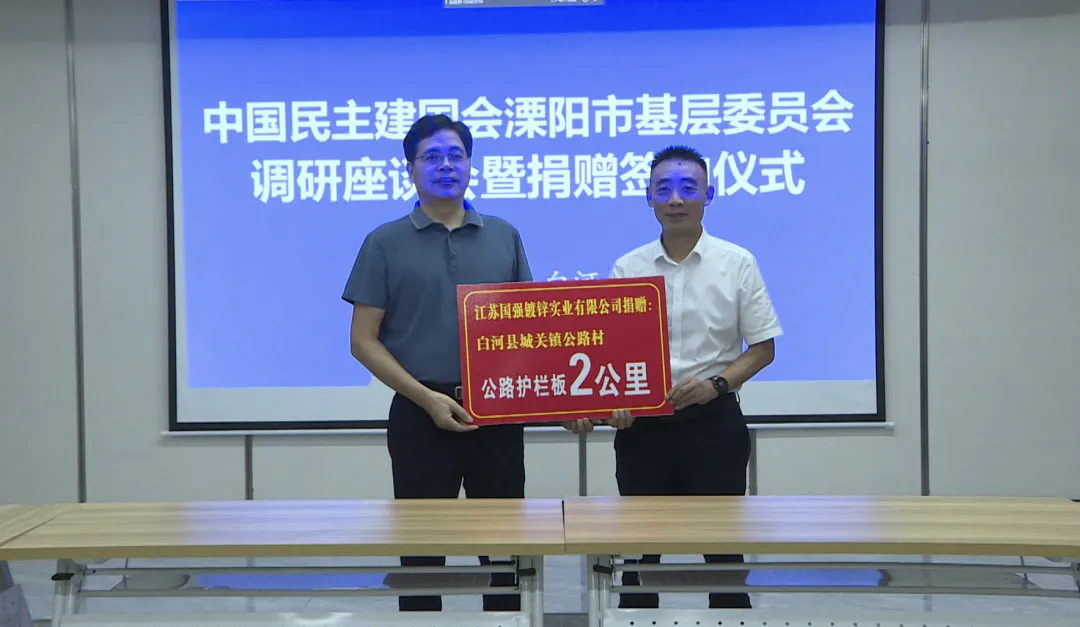在座談會上,民建溧陽基層委員會向白河慈善協(xié)會捐贈5萬元幫扶資金,會員企業(yè)江蘇國強鍍鋅實業(yè)有限公司為城關鎮(zhèn)公路村捐贈了全長2公里的公路護欄板,會員企業(yè)溧陽暢享互聯(lián)網科技有限公司與白河縣電子商務公共服務中心簽訂了戰(zhàn)略合作協(xié)議。