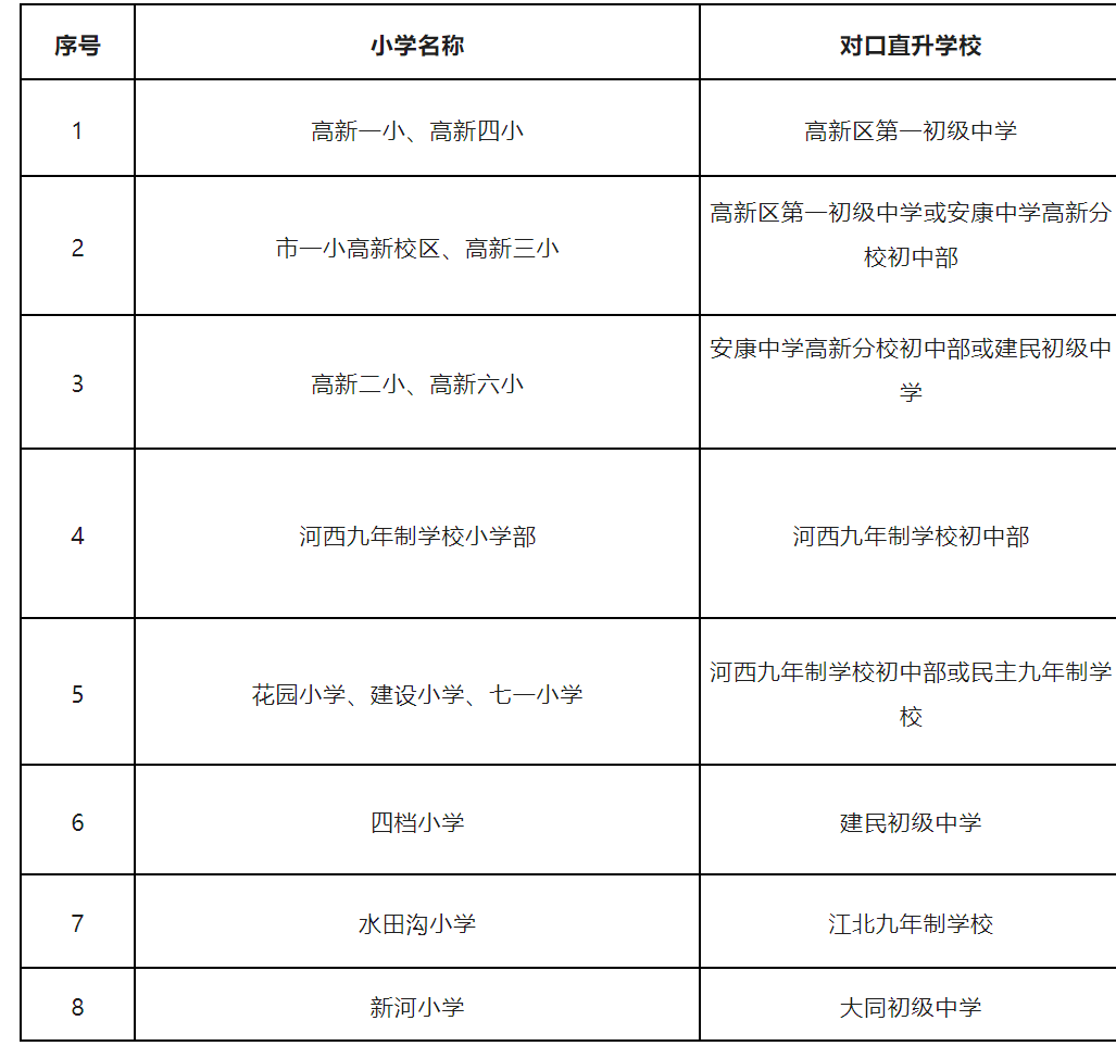 四、安康高新區(qū)2023年小升初對(duì)口直升一覽表