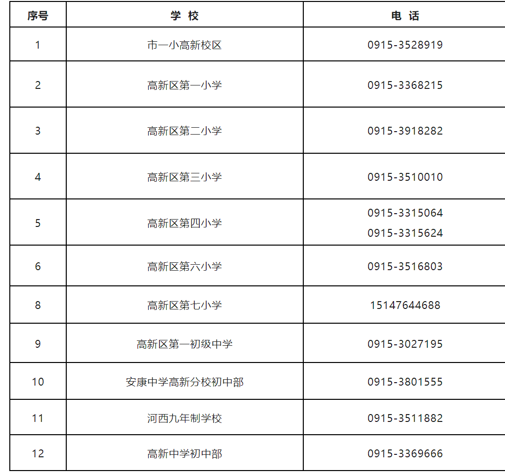 五、安康高新區(qū)2023年中小學(xué)校招生入學(xué)咨詢電話