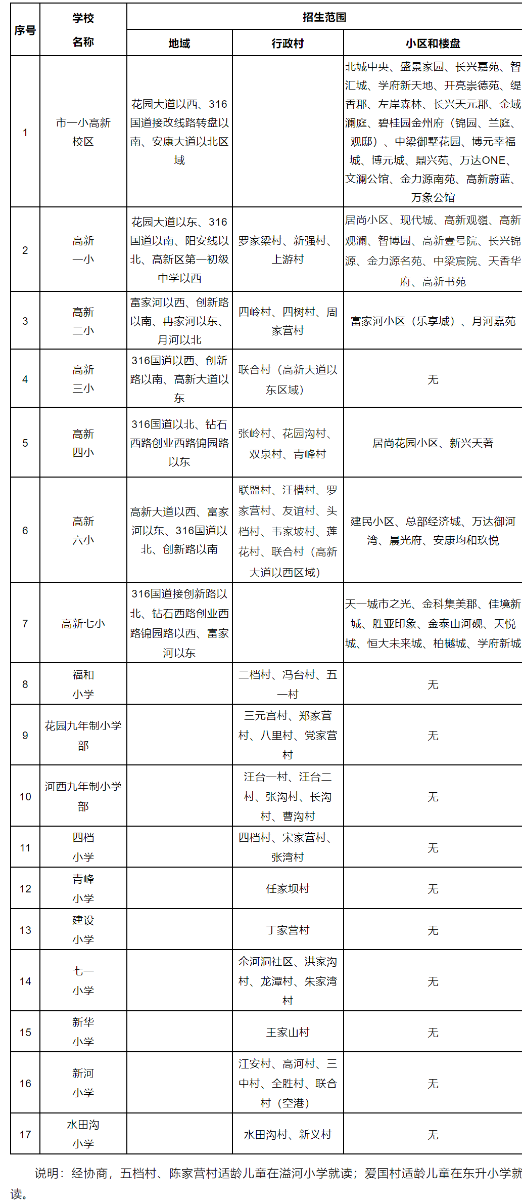 三、安康高新區(qū)2023年小學(xué)服務(wù)范圍一覽表