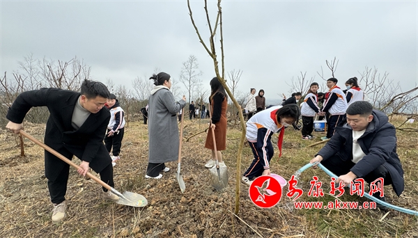 活動伊始,綠化公司的工作人員詳細地講解了植樹的要點;顒蝇F(xiàn)場,大家分工協(xié)作,相互配合,放苗扶樹、揮鍬填土、踩土固苗、提水灌溉……充分發(fā)揚了團結(jié)協(xié)作、吃苦耐勞的優(yōu)良作風。在大家的共同努力下,一棵棵小樹屹立在春風中,成為這個春天又一道亮麗的風景。隊員們還親手懸掛小樹牌,許下自己美好心愿。