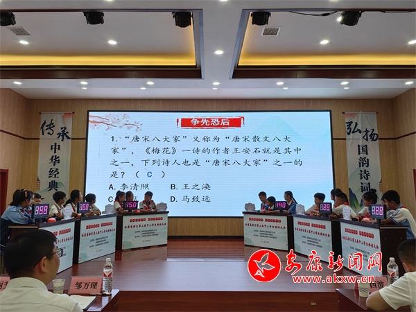 本網(wǎng)訊(通訊員 王宗濤)5月30日,安康高新區(qū)“弘揚國韻詩詞 傳承孝義文化”第三屆中小學生詩詞大會決賽在高新區(qū)第四小學舉行。全區(qū)各中小學校長、學生代表110余人到場觀摩,活動通過微信視頻號同步直播,2萬余名觀眾在線觀看比賽,一起重溫那些歷久彌新的經(jīng)典,領略中國古詩詞的魅力。