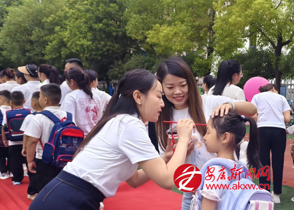 在傳統(tǒng)文化環(huán)節(jié)“朱砂啟智”時,校領(lǐng)導(dǎo)以朱砂點痣,傳古代“開筆禮”智慧;新生向孔子像行拜師禮,稚嫩鞠躬種下尊師種子;“擊鼓明智”環(huán)節(jié),新生逐個敲鼓,三聲鼓響承載“一鳴驚人”“學(xué)業(yè)有成”“志向遠大”期許。儀式后,班主任帶新生入班,開啟校園新生活。
