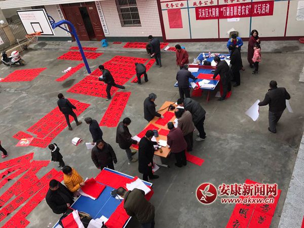 安康新聞網(wǎng)訊(通訊員 劉瀟 楊峰)1月8日,大同鎮(zhèn)陳家營(yíng)村熱鬧非凡。2017年“萬(wàn)副春聯(lián)進(jìn)農(nóng)家”活動(dòng)在這里舉行,在寒冬臘月里為全鎮(zhèn)人民帶來(lái)了濃濃暖意。春聯(lián)書(shū)寫(xiě)臺(tái)前人頭攢動(dòng),前來(lái)免費(fèi)領(lǐng)取春聯(lián)的群眾絡(luò)繹不絕,書(shū)法家們揮毫潑墨,現(xiàn)場(chǎng)群眾紛紛拿起手機(jī)拍照留念。一幅幅大紅的春聯(lián),傳遞著新春的吉祥,寄托著對(duì)新年的祝福。