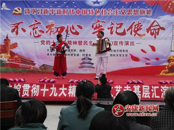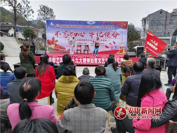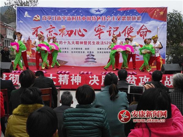安康新聞網(wǎng)訊(通訊員 潘德安)為進(jìn)一步學(xué)習(xí)貫徹宣傳黨的十九大精神,把思想和行動(dòng)盡快統(tǒng)一到大會(huì)精神上來(lái),以習(xí)近平新時(shí)代中國(guó)特色社會(huì)主義思想武裝頭腦,高標(biāo)準(zhǔn)、嚴(yán)要求、強(qiáng)責(zé)任、實(shí)舉措決勝脫貧攻堅(jiān)戰(zhàn),11月16日,大河鎮(zhèn)文化站邀請(qǐng)安康漢韻知青藝術(shù)團(tuán)為大河鎮(zhèn)伍河村開(kāi)展“學(xué)習(xí)貫徹黨的十九大精神,決勝脫貧攻堅(jiān)戰(zhàn)”主題文藝演出活動(dòng)。