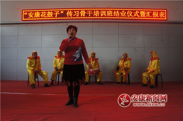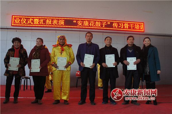 安康新聞網(wǎng)訊(通訊員 惠星 年靜) 12月2日,由安康市非遺保護(hù)中心、漢濱區(qū)文化館、區(qū)非遺保護(hù)中心共同舉辦的“把根留住•我眼中的非遺——安康花鼓子傳習(xí)骨干培訓(xùn)班結(jié)業(yè)儀式暨匯報(bào)表演”在安康市漢濱區(qū)文化館隆重舉行,首期參加培訓(xùn)的40名學(xué)員現(xiàn)場展示學(xué)習(xí)成果,并獲得結(jié)業(yè)證書。