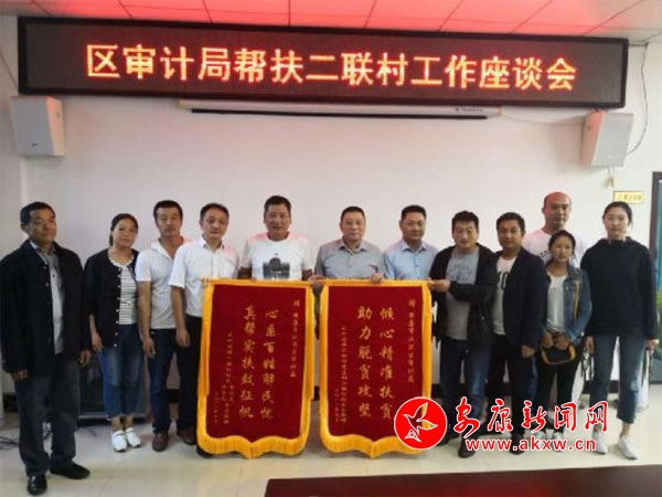 安康新聞網(wǎng)訊(通訊員 陳澤榮)9月14日上午,區(qū)審計(jì)局迎來了一批特殊的客人——漢濱區(qū)大竹園鎮(zhèn)人大主席余尚坤、二聯(lián)村“兩委”班子主要負(fù)責(zé)人和部分村民代表,他們冒雨前行,代表村委會(huì)和當(dāng)?shù)刎毨罕,送來了兩面印?ldquo;傾心精準(zhǔn)扶貧 助力脫貧攻堅(jiān)”和“心系百姓解民憂 真幫實(shí)扶鼓征帆”的錦旗,衷心感謝區(qū)審計(jì)局3年來在精準(zhǔn)扶貧工作中對(duì)二聯(lián)村和二聯(lián)村全體貧困戶的大力幫扶。i2F安康新聞網(wǎng)