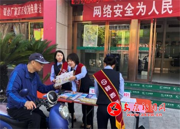 安康新聞網(wǎng)訊 為增強(qiáng)全民網(wǎng)絡(luò)安全意識(shí),營(yíng)造安全健康文明的網(wǎng)絡(luò)環(huán)境,漢濱區(qū)組織轄區(qū)內(nèi)銀行開展了“網(wǎng)絡(luò)安全為人民,網(wǎng)絡(luò)安全靠人民”為主題的宣傳服務(wù)周活動(dòng)。