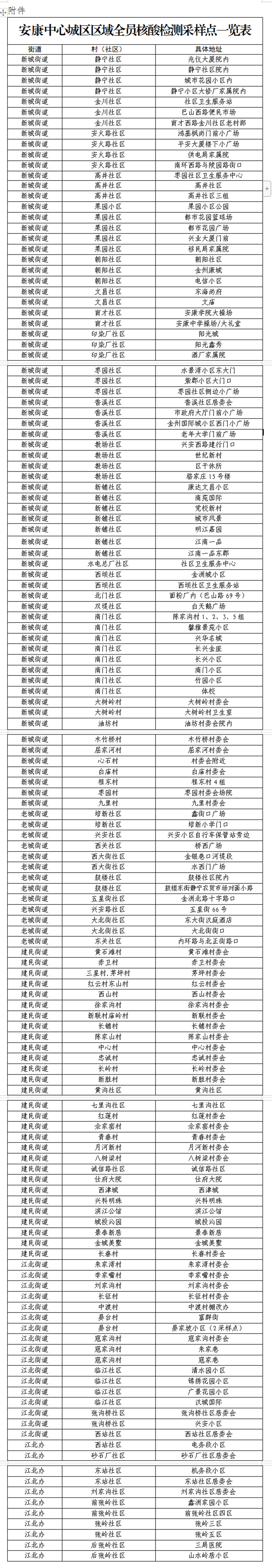 附件:安康中心城區(qū)區(qū)域全員核酸檢測(cè)采樣點(diǎn)一覽表