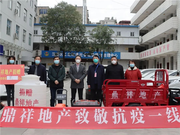疫情無情人有情,關(guān)鍵時刻顯擔(dān)當(dāng),12月1日下午,鼎祥房地產(chǎn)開發(fā)有限公司為江北街道送來一整套價值2萬元的消殺物資——發(fā)電機一臺、洗車機一臺、電動三輪車一輛、噴灑水桶一個,以實際行動支援防疫一線、踐行社會責(zé)任。