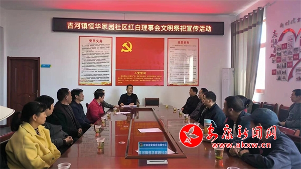 “清明節(jié)是祭奠先人、緬懷逝者、寄托哀思的日子,我們要抓住這個(gè)重點(diǎn)時(shí)間節(jié)點(diǎn),通過持續(xù)的宣傳引導(dǎo)和政策解讀,推動(dòng)移風(fēng)易俗、文明祭掃理念深入人心。”理事會(huì)組織社區(qū)干部、部分黨員群眾代表學(xué)習(xí)了《紅白理事會(huì)章程》,宣讀了《2024年清明節(jié)文明祭掃倡議書》,安排部署了當(dāng)前森林防火工作,號(hào)召大家遵守社會(huì)公德,用綠色、健康、簡約的祭掃方式表達(dá)對(duì)逝去親人的思念之情,減少集中出行發(fā)生交通堵塞、焚燒紙錢造成火災(zāi)隱患情況發(fā)生。
