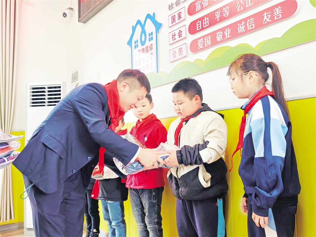 愛心人士向?qū)W生捐贈校服。