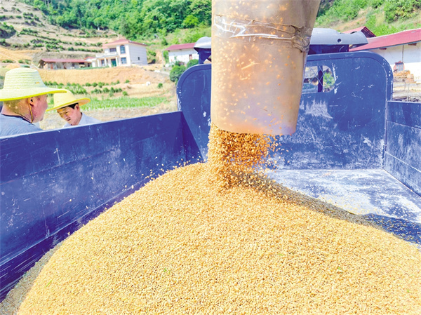風(fēng)吹麥田千層浪,又到一年收獲時(shí)。在漢濱區(qū)晏壩鎮(zhèn)中心社區(qū)安康客意然農(nóng)業(yè)開發(fā)有限公司種植園區(qū)內(nèi),小麥在陽光的照耀下,閃著金燦燦的光芒,沉甸甸的麥穗隨風(fēng)搖曳,發(fā)出“沙沙”聲響。收割機(jī)正馬力全開,在金色麥浪中來回穿梭,伴隨著陣陣轟鳴聲,小麥從機(jī)艙中傾瀉而出,顆顆金黃、粒粒飽滿,裝滿車輛,整個(gè)過程一氣呵成,高效而精準(zhǔn)。