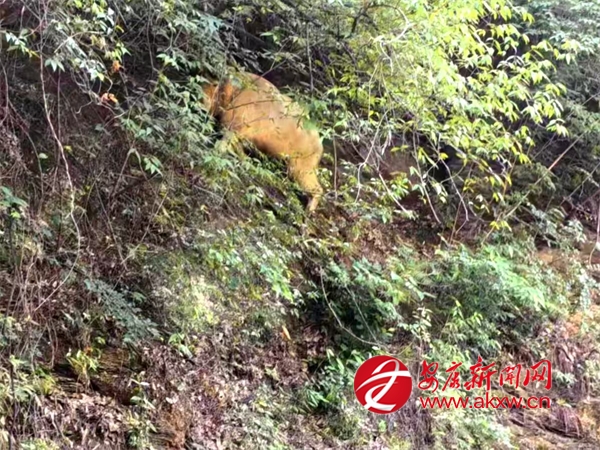 “猛然一看像只羊,仔細(xì)端詳又不對(duì),那腳長得跟牛蹄似的。”回憶起當(dāng)時(shí)的場景,王開濤仍難掩興奮。消息一經(jīng)傳開,鎮(zhèn)領(lǐng)導(dǎo)高度重視,即刻組織宣傳、林業(yè)干部趕赴現(xiàn)場。據(jù)王開濤介紹,6月27日上午7時(shí)40分許,他正驅(qū)車前往15組組長家,準(zhǔn)備帶領(lǐng)護(hù)林員開展巡山工作。行至土房溝路段時(shí),路邊護(hù)欄外一個(gè)形似“羊頭”的身影突然闖入眼簾。王開濤急忙剎車,就在停車的剎那,只見這個(gè)“羊頭牛腳”的神秘動(dòng)物利落地躍過護(hù)欄,“咚”地落在路面,還沖著他發(fā)出一聲低沉的“嗷”叫,緊接著身形一閃,以敏捷的身姿竄上溝崖。電光石火間,王開濤迅速掏出手機(jī),接連按下快門,成功抓拍下3張珍貴畫面。