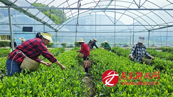 在胡家溝村康聚龍農(nóng)業(yè)開發(fā)有限公司,40余畝高標準聯(lián)動茶葉大棚令人眼前一亮。“通過控制大棚內(nèi)溫度、濕度、光照和空氣質(zhì)量等因素,我們有效保障了茶葉生長環(huán)境,使茶葉品質(zhì)更加穩(wěn)定。”公司技術負責人介紹,“這種大棚還能有效縮短茶葉生長周期,實現(xiàn)茶芽早發(fā),從而提早20天上市,大大提高經(jīng)濟效益。”