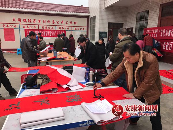 安康新聞網(wǎng)訊(通訊員 劉瀟 楊峰)1月8日,大同鎮(zhèn)陳家營村熱鬧非凡。2017年“萬副春聯(lián)進(jìn)農(nóng)家”活動在這里舉行,在寒冬臘月里為全鎮(zhèn)人民帶來了濃濃暖意。春聯(lián)書寫……