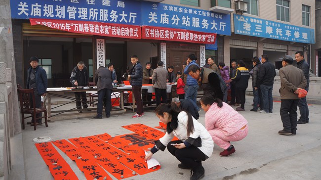 為認真貫徹文化部“文化進萬家”活動要求,日前,漢濱區(qū)2015年“萬副春聯(lián)進農(nóng)家活動”在關(guān)廟鎮(zhèn)金星村舉行。啟動儀式由區(qū)文廣局、關(guān)廟鎮(zhèn)、區(qū)文化館、區(qū)……