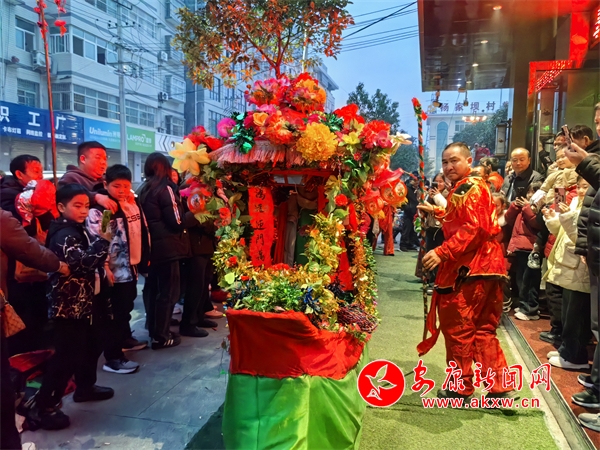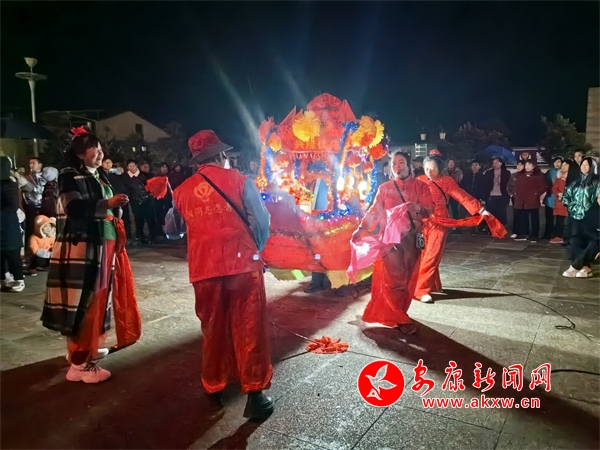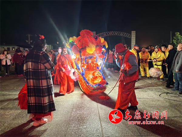在位于漢陰縣平梁鎮(zhèn)的興隆佳苑社區(qū),春節(jié)期間,小區(qū)里處處洋溢著節(jié)日氛圍。夜幕降臨,社區(qū)廣場響起陣陣鑼鼓聲,;ù硌菡介_始。只見表演者雙手提船、配合默契,船體隨著“波浪”旋轉、顛簸,身穿喜慶艷麗的服裝、頭戴五彩頭飾的表演人員個個精神抖擻,一邊前行,一邊唱著漢陰本地的花鼓戲,祈求來年風調雨順、福壽安康。翻飛的彩扇、華麗的彩船,精心編排、詼諧幽默的表演,為社區(qū)群眾呈現(xiàn)了一場精彩的視覺盛宴。