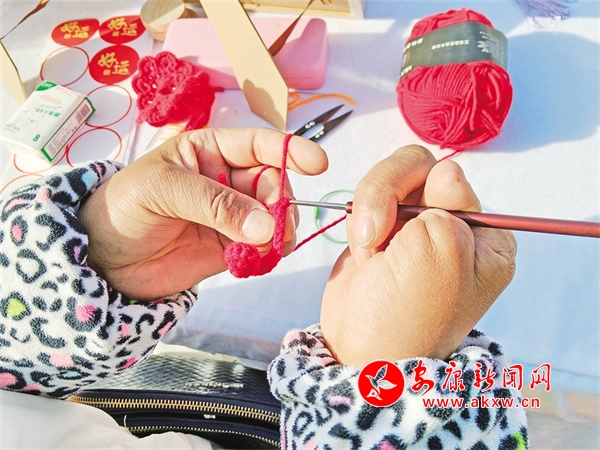 隨著鉤針上下飛舞,不一會(huì)兒工夫,一團(tuán)團(tuán)彩色的毛線就變成精美的小動(dòng)物、小花等栩栩如生的造型……初次見到胡運(yùn)翠時(shí),她正在金州廣場(chǎng)擺攤,攤位上一排排整齊的小物件,引來大、小朋友紛紛圍觀、選購。