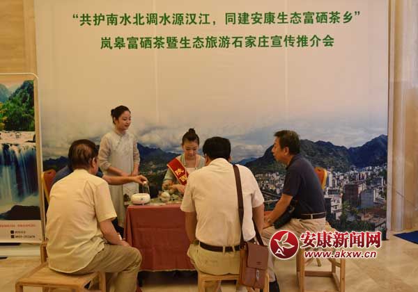此次推介,是安康市“共護(hù)南水北調(diào)水源漢江,同建安康生態(tài)富硒茶鄉(xiāng)”系列宣傳推介活動(dòng)之一,由安康市政府主辦,嵐皋縣政府、安康市招商局、安康市南水北調(diào)辦承辦,石家莊市旅游局、河北省陜西商會(huì)協(xié)辦。石家莊市政府副秘書(shū)長(zhǎng)馬立寧,安康市委常委、市政府副市長(zhǎng)尹清遼分別致辭。嵐皋縣委書(shū)記周康成就富硒茶和生態(tài)旅游進(jìn)行綜合推介,活動(dòng)由嵐皋縣政府縣長(zhǎng)楊義龍主持。