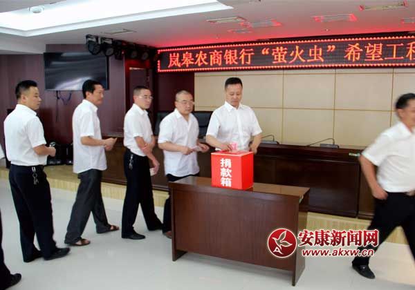 活動中,該行黨委書記、董事長熊宗新同志宣讀了倡議書,團(tuán)縣委少先隊(duì)總輔導(dǎo)員員李思琦為嵐皋農(nóng)商銀行“螢火蟲”希望工程“信合筑夢”信貸助學(xué)服務(wù)志愿隊(duì)授旗,農(nóng)商銀行機(jī)關(guān)及城區(qū)全體職工為貧困大學(xué)生進(jìn)行了現(xiàn)場捐款,共籌集現(xiàn)金一萬余元,;與此同時(shí),在嵐皋農(nóng)商銀行各大網(wǎng)點(diǎn),也正在開展此項(xiàng)愛心捐助活動。