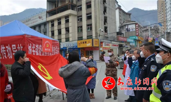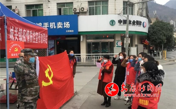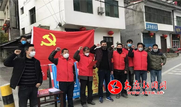 “我宣誓,我志愿加入新型冠狀病毒肺炎阻擊戰(zhàn),堅(jiān)決貫徹習(xí)近平總書記關(guān)于疫情防控重要指示精神,全面落實(shí)黨中央和省市縣委決策部署,聽從指揮,服從安排,義無反顧,不懼困難,堅(jiān)守陣地,積極工作,為全面打贏疫情防控阻擊戰(zhàn)獻(xiàn)出全部力量!”在城關(guān)鎮(zhèn)17個(gè)臨時(shí)黨支部,紅色黨旗飄揚(yáng),黨員舉起右手宣誓,志愿為本次疫情防控狙擊戰(zhàn)貢獻(xiàn)出全部力量。