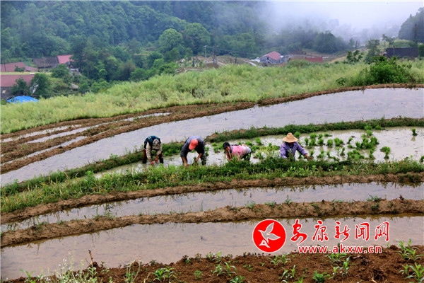 本網(wǎng)訊(通訊員 廖霖 馬桂芳)五月立夏農(nóng)耕忙,插下秧的梯田田水如鏡,波光粼粼;青山、白霧、梯田、鮮花,寧靜和諧的田園美景里,錯落有致、形態(tài)各異的梯田與朝霞和農(nóng)民忙碌勞作的身影一起構(gòu)成了一幅美麗的畫卷,吸引不少游客和攝影愛好者前來觀賞拍攝。
