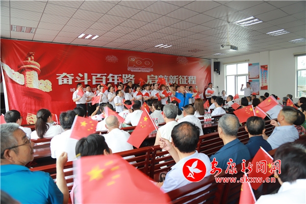 本網(wǎng)訊(通訊員 廖霖 張超)窗外細雨潤青山,室內(nèi)歌聲頌黨恩。6月25日,嵐皋縣城關鎮(zhèn)西坡社區(qū)黨總支部委員會和共駐共建單位200余名黨員和群眾歡聚一堂,舉行“奮斗百年路·啟航新征程”活動;顒釉诖蠛铣稕]有共產(chǎn)黨就沒有新中國》中正式拉開帷幕,200余名黨員和群眾揮舞著小紅旗,同唱《沒有共產(chǎn)黨就沒有新中國》,嘹亮高亢的歌聲久久回蕩,一波波“紅色浪潮”在西坡社區(qū)會議室涌動。社區(qū)黨員們用真摯的情感、燦爛的笑容、昂揚的狀態(tài),向黨深情告白。
