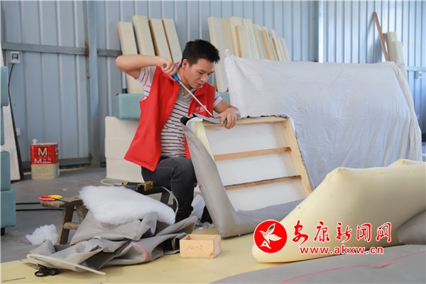 本網(wǎng)訊(通訊員 廖霖)伴著清晨的秋涼,嵐皋縣民主鎮(zhèn)銀盤村迎來新的一天。筆者走進(jìn)嵐皋縣家旺銘品家具有限公司加工廠,映入眼簾的是縫紉機(jī)前工人忙碌的身影,工人們正專注、熟練地縫制著沙發(fā)皮套,縫紉機(jī)“噠噠”響不停,她們有的在飛快地踩著縫紉機(jī),有的在整理已經(jīng)加工好的沙發(fā),有的在切割木料,十幾名工人正在各自操作臺上有序忙碌。