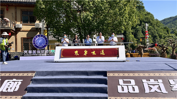 開幕式上,鄭小東、唐紋、馬宏偉、魏小林等領導一同點亮“嵐皋味道”牌匾,唐紋宣布嵐皋美食旅游活動開幕。