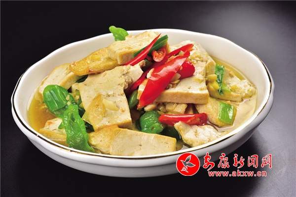 煎豆腐:將豆腐切成3厘米寬、5厘米長、0.5厘米厚的大片,韭菜擇洗干凈,切成1厘米長的小段,起鍋燒油,豆腐煎至兩面金黃,放入韭菜段,悶一分鐘即可,煎豆腐外表酥脆、內(nèi)里細嫩,香氣四溢,深受喜愛。