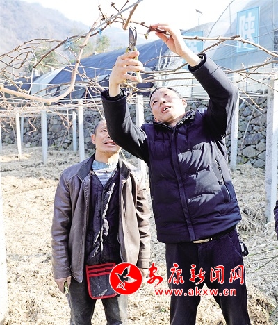 陳國富2019年在金珠溝村種植獼猴桃,他除了有150畝老園區(qū)外,還新建了100畝獼猴桃新園區(qū),去年獼猴桃已取得了初步的經(jīng)濟效益。進入冬天,獼猴桃樹上葉子完全掉落后,他就開始進行修剪,現(xiàn)在接續(xù)的是去年未完成的工作。