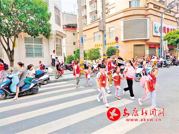 志愿者護(hù)送學(xué)生過(guò)馬路