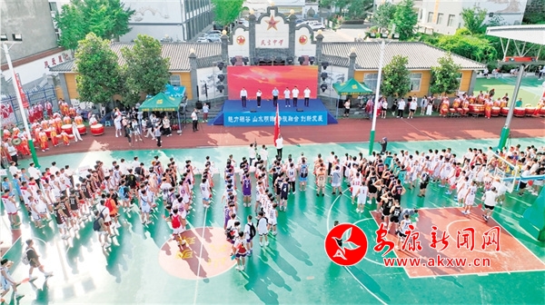 開幕式在氣勢(shì)恢宏的大道鑼鼓《豐收鑼鼓曲》中拉開帷幕,舞蹈《回到山溝溝》、歌曲《全勝寨》、啦啦操《籃球?qū)氊悺贰?ldquo;灌籃神曲”《直到世界盡頭》等節(jié)目相繼上演,臺(tái)下掌聲、歡呼聲不斷。