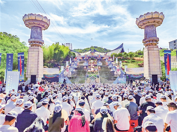 暮春的南宮山,蒼翠浸染。在悠揚(yáng)的《神奇美麗南宮山》旋律中,活動(dòng)正式啟幕,《序章·天門啟道》《天玄·問道山河》《地杰·武韻巴人》《和鳴·萬(wàn)象共生》四大篇章層層遞進(jìn)。伴隨著激昂的音樂,國(guó)樂表演《刀劍如夢(mèng)》、竹海劍影《笑傲江湖》、巴人武韻《虎鈕錞于》、武術(shù)《天地人和》、舞+武《舞武對(duì)弈》等節(jié)目依次出場(chǎng),活動(dòng)現(xiàn)場(chǎng)鼓點(diǎn)如雷,舞者們騰空而起,剛猛的武術(shù)招式與充滿力量感的戰(zhàn)舞動(dòng)作交織,每一次騰躍,都將現(xiàn)場(chǎng)觀眾的熱血與激情點(diǎn)燃。