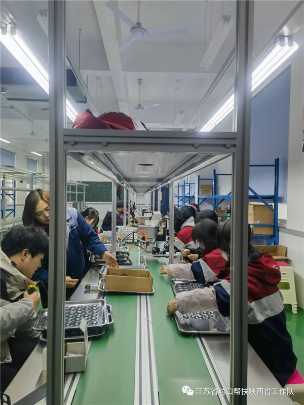 為了探索蘇陜協(xié)作產(chǎn)業(yè)發(fā)展新路徑,聯(lián)絡(luò)組依托安康蘇陜誠銘電子科技有限公司在嵐皋縣職教中心建設(shè)并投運了校企合作示范基地和“勞動教育+職業(yè)體驗”研學基地,從而嘗試出了蘇陜協(xié)作在產(chǎn)教融合領(lǐng)域的一種新模式。