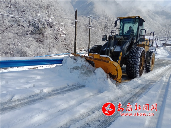 2020年1月7日嵐皋公路段職工在國道541線平利縣八仙真化龍山路段清理路面積雪!