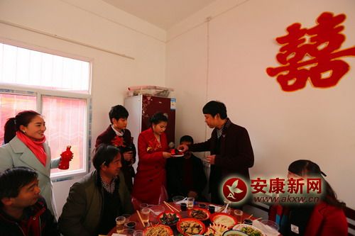 喜宴結(jié)束后,記者和新郎的交談中得知,25歲的武道勝是一名汽車修理工,別看年紀不大,卻是一名修車的老師傅了,一個月4000多元的工資,在寧陜當?shù)厮愕纳鲜侵猩纤。談到他和黃靜是如何相戀時,內(nèi)向的小武,顯得更加羞澀。到是黃靜打開了她的話匣子,“我們是通過媒人介紹走到一起的,兩家相隔也不遠,他經(jīng)常帶我一起去看家門前小河邊覓食的朱鹮!還給我說朱鹮是最忠貞的鳥,一輩子只有一個配偶。他想我們倆的愛情像朱鹮一樣完美!”“我聽朱鹮站的李站長說的!”武道勝在旁邊不好意思的撓著頭說道。