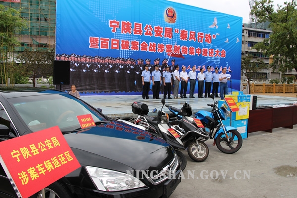 8月4日,寧陜縣召開“秦風行動”暨百日破案會戰(zhàn)涉案財物集中返還大會,向受害群眾返還總價值60余萬元的財物。