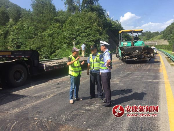 8月9日,寧陜路政中隊聯(lián)合安康高交來到K1225+300至K1240+500M路段,實地檢查施工情況。按高速公路大中修養(yǎng)護施工要求,該路段實行單幅雙向通行,路政、交警人員重點對施工路段的施工標志、導向標志、限速標志以及交通標志等是否按照規(guī)定擺放;施工區(qū)域與通行區(qū)域是否進行有效的隔離以及施工機械前后是否設置明顯的警示標志和閃光警示燈等情況進行檢查。通過檢查,路政人員發(fā)現(xiàn)單幅雙向分流路段兩處改道口路段存在安全隱患,路面有出現(xiàn)坑槽的情況。對存在安全隱患,路政、交警人員當場找到施工單位要求整改,仔細告知需要增加哪些些標志標牌以及如何設置隔離設施的注意事項。同時路政、交警人員與施工方對施工進度進行了仔細的詢問,并就九寨溝震后救援貨車通行問題進行了協(xié)商,重點強調(diào)近期施工路段道路暢通的重要性,要求施工單位嚴格按照施工作業(yè)要求進行施工,及時消除安全隱患,有效防止事故發(fā)生,保障施工現(xiàn)場作業(yè)安全與道路暢通。