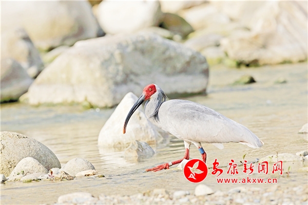 那是2007年8月份的一天,晚飯后,鐘家鑫出去鍛煉,走到縣城拱橋時(shí),突然看到河里的石頭上,站著一只鳥,“羽毛是灰色的,還有白色,嘴很長還是紅顏色的。”鐘家鑫說。