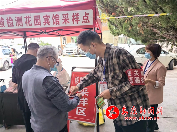為確保中心城區(qū)群眾應(yīng)檢盡檢,城關(guān)鎮(zhèn)新時代文明實踐活動以協(xié)助全員核酸檢測為主要內(nèi)容蓬勃開展。城南社區(qū)新時代文明實踐站志愿者、醫(yī)護(hù)人員組成“上門服務(wù)”采樣隊為武警中隊執(zhí)勤戰(zhàn)士、高齡老人開展上門采樣服務(wù),志愿服務(wù)“一抹紅”成為此次新一輪中心城區(qū)全員核酸檢測工作一道亮麗的風(fēng)景線。