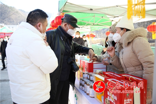 年貨節(jié)現(xiàn)場設置了30余個展位,全縣30余家農產(chǎn)品加工銷售企業(yè)參加活動,匯聚了代表寧陜地方特色的臘肉、香菇、木耳、核桃油等100余種農副產(chǎn)品,充分展示了寧陜豐富的名優(yōu)特產(chǎn)農產(chǎn)品資源及發(fā)展成果,為全縣人民送上了本地名優(yōu)農產(chǎn)品“年貨大禮包”。除了線下采購外,現(xiàn)場還有主播直播帶貨,網(wǎng)友可以在抖音等平臺,通過線上來采購寧陜山珍。