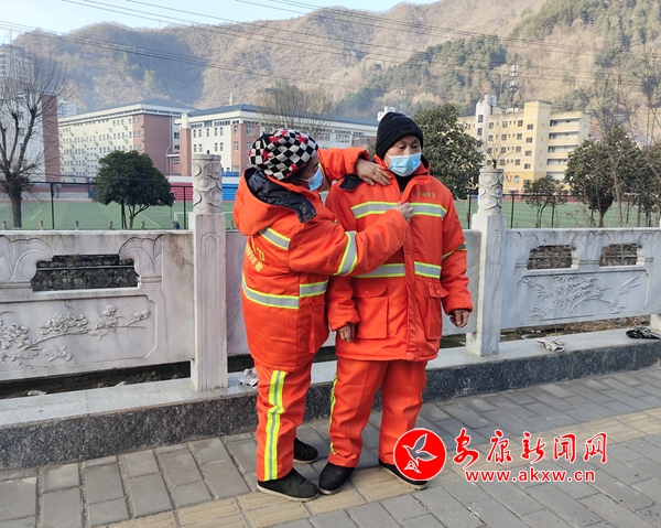 本網(wǎng)訊(通訊員 王輝)1月21日(除夕)早上8時(shí)許,空氣中依舊彌漫著寒冷的氣息。筆者在陜西省寧陜縣城區(qū)川流的行人和車輛旁看到,環(huán)衛(wèi)夫妻檔方明貴和李金蘭正一前一后沿途清掃路邊散落的紙屑。