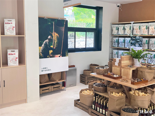 伴隨著一陣噼里啪啦的鞭炮聲,5月1日,城關(guān)鎮(zhèn)“八畝溪谷”精品民宿投入試運(yùn)營(yíng)。走進(jìn)民宿的生態(tài)社區(qū)服務(wù)中心,右側(cè)的山珍展示區(qū)吸引了群眾和游客的目光,木耳、山菌、朱鷺大米、五味子酒等當(dāng)?shù)靥禺a(chǎn)受到游客青睞。