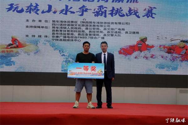 啟動儀式結束后,筒車灣暗河漂流“玩轉山水爭霸挑戰(zhàn)賽”開賽。來自省內的200余名選手,兩人一組乘坐皮筏艇,從起點開始沿漂流河道漂至終點,用時最短者獲勝。比賽中,參賽選手按時間間隔順序出發(fā),展開激烈角逐,最終決出一等獎一名,二等獎兩名,三等獎三名。