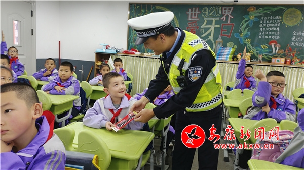 最后,宣傳民警鼓勵學生“交通安全、從我做起”,從小養(yǎng)成遵守交規(guī)、文明出行的良好習慣。把學到的交通安全知識帶回家,發(fā)揮“小手拉大手”的紐帶作用,當好交通安全的宣傳員和監(jiān)督員,監(jiān)督家長遵守交通法規(guī),共同維護道路交通秩序,做到安全文明出行。