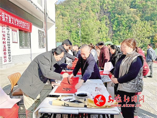 “我們村里來了文化特派員免費給我們寫字,不僅可以看到優(yōu)秀的作品,孩子還能跟老師學(xué)東西,希望以后他們能經(jīng)常來,我們也高興。”梅子鎮(zhèn)安坪村村民劉紅英開心地說道。